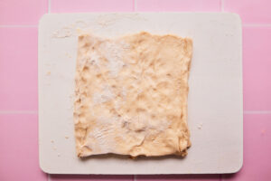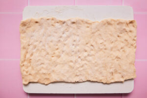 - Fold the rectangle of dough in half, from left to right.