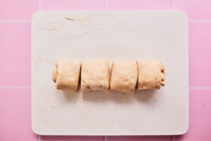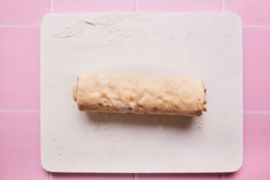 - Now roll the dough from top to bottom to create a log.
