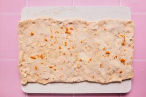 - Zest one third of an orange on top of your dough.