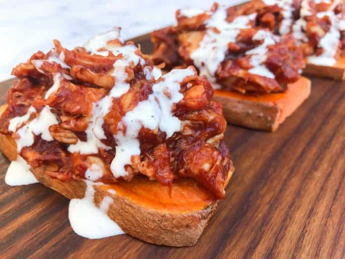 If you’re on Whole30 you’ll want to use a compliant barbecue sauce. I make my own because it’s super simple (everything just goes in the blender). You can find the sauce recipe in this Sugar Free Oven Baked BBQ Chicken.