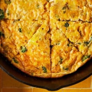 This deliciously cheesy frittata is loaded with broccoli and so easy to make! My family loves this for a weekend breakfast or brunch. Serve with a side of bacon, potatoes, fruit, or a simple salad.