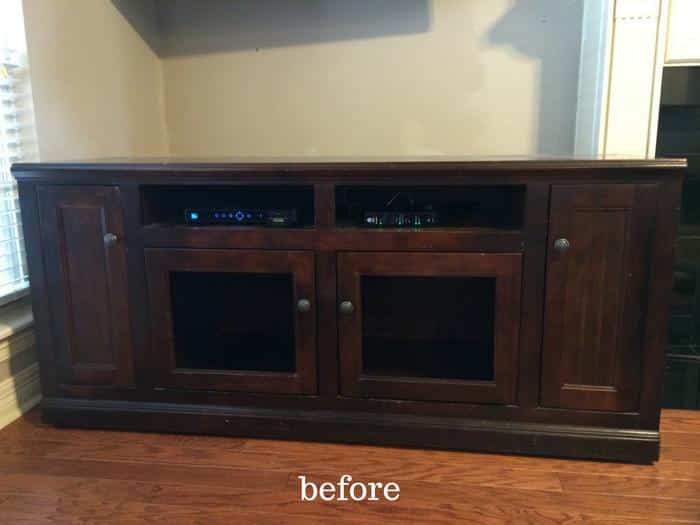 Thinking of doing something similar with our TV stand. It’s about the same color as your before picture.