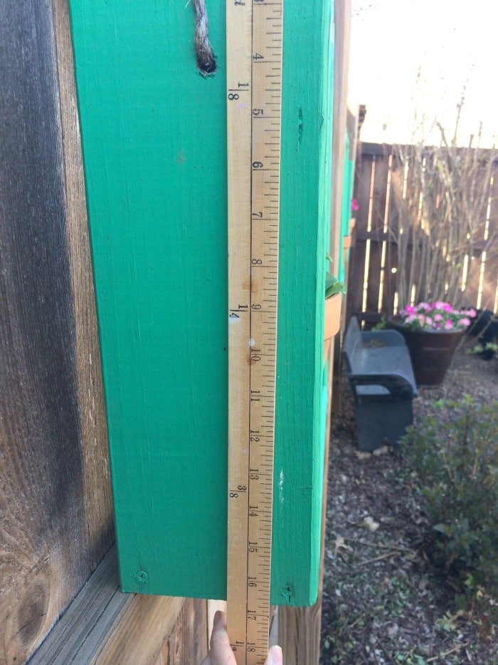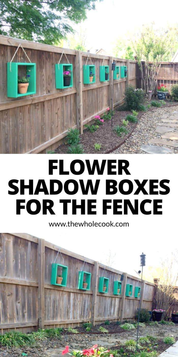 I don’t believe this project warrants step-by-step instructions. It’s pretty self explanatory. But, hey, if you need them try this. Cut your wood. Nail your wood together. Paint. Drill two holes in your box (for the rope). Tie the rope. Mount the shadow box to your fence. Add flowers. The end and you’re welcome.
