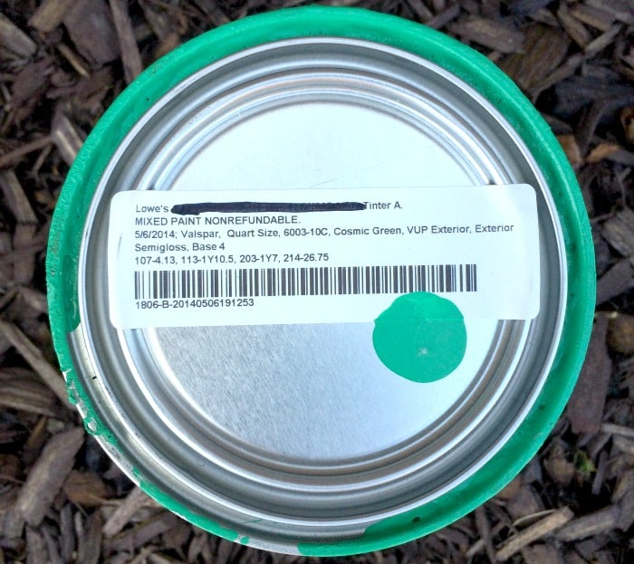 The paint I chose is called Cosmic Green. After two years I have yet to repaint the shadow boxes. I think the color has held up really well! Here is the information for it should you want to use it too.