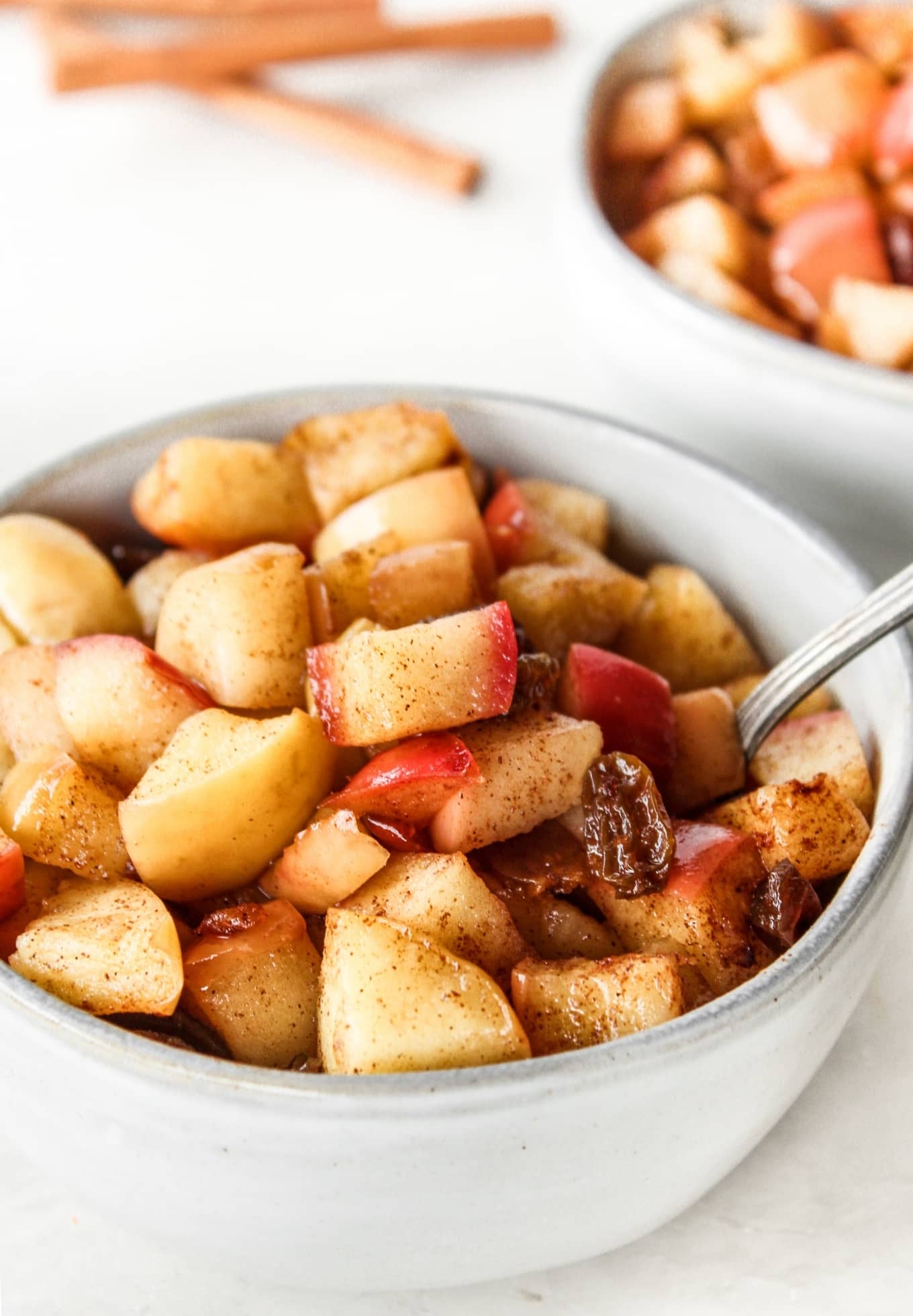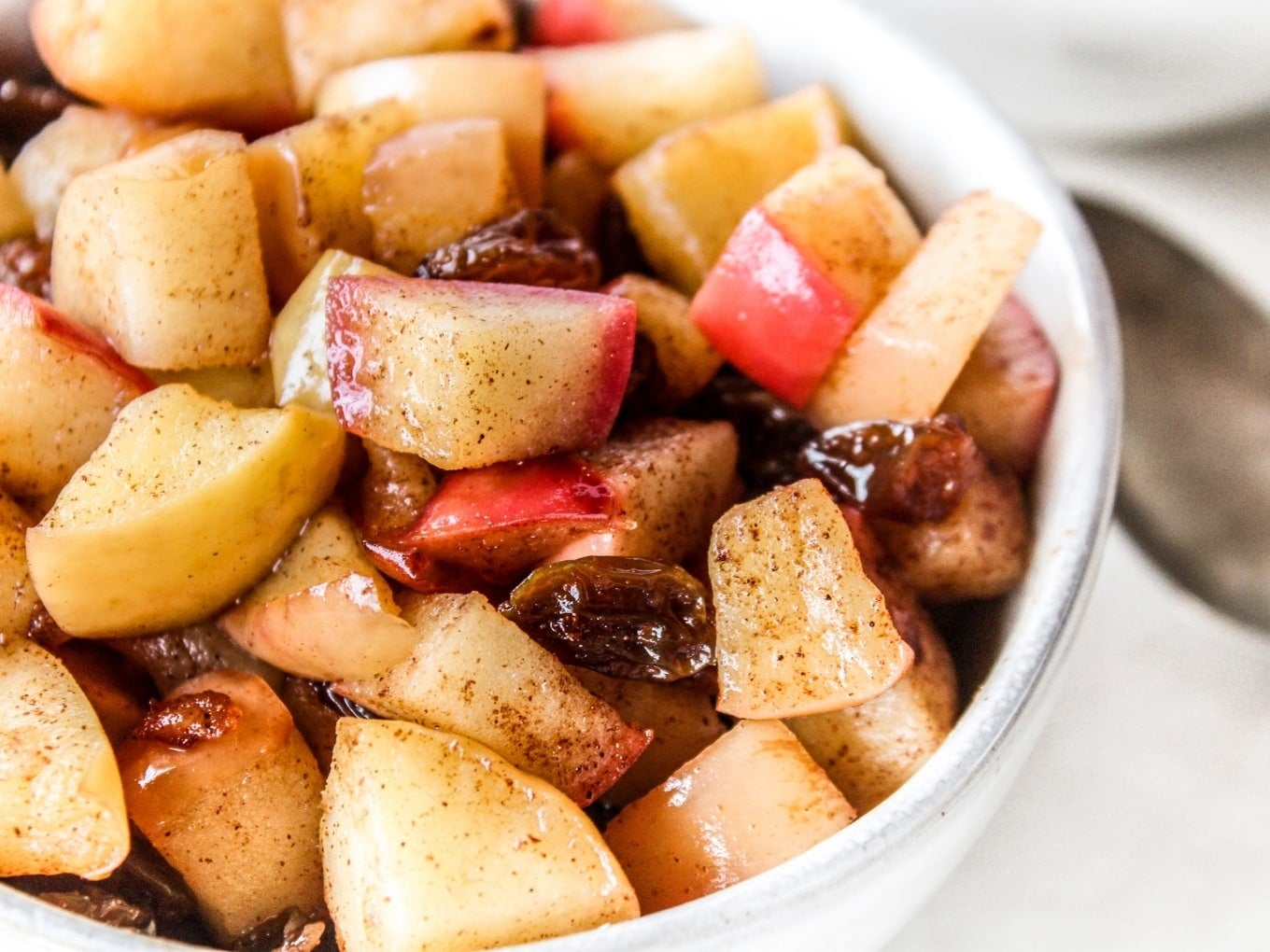 Raisins give this dish additional sweetness. They plump and soften as they’re sautéed so they compliment the tender apples beautifully.
